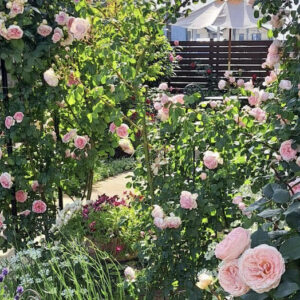 落葉樹やバラ等の庭とお花畑の庭と分けており、それぞれ楽しんでいただけたらと思います。