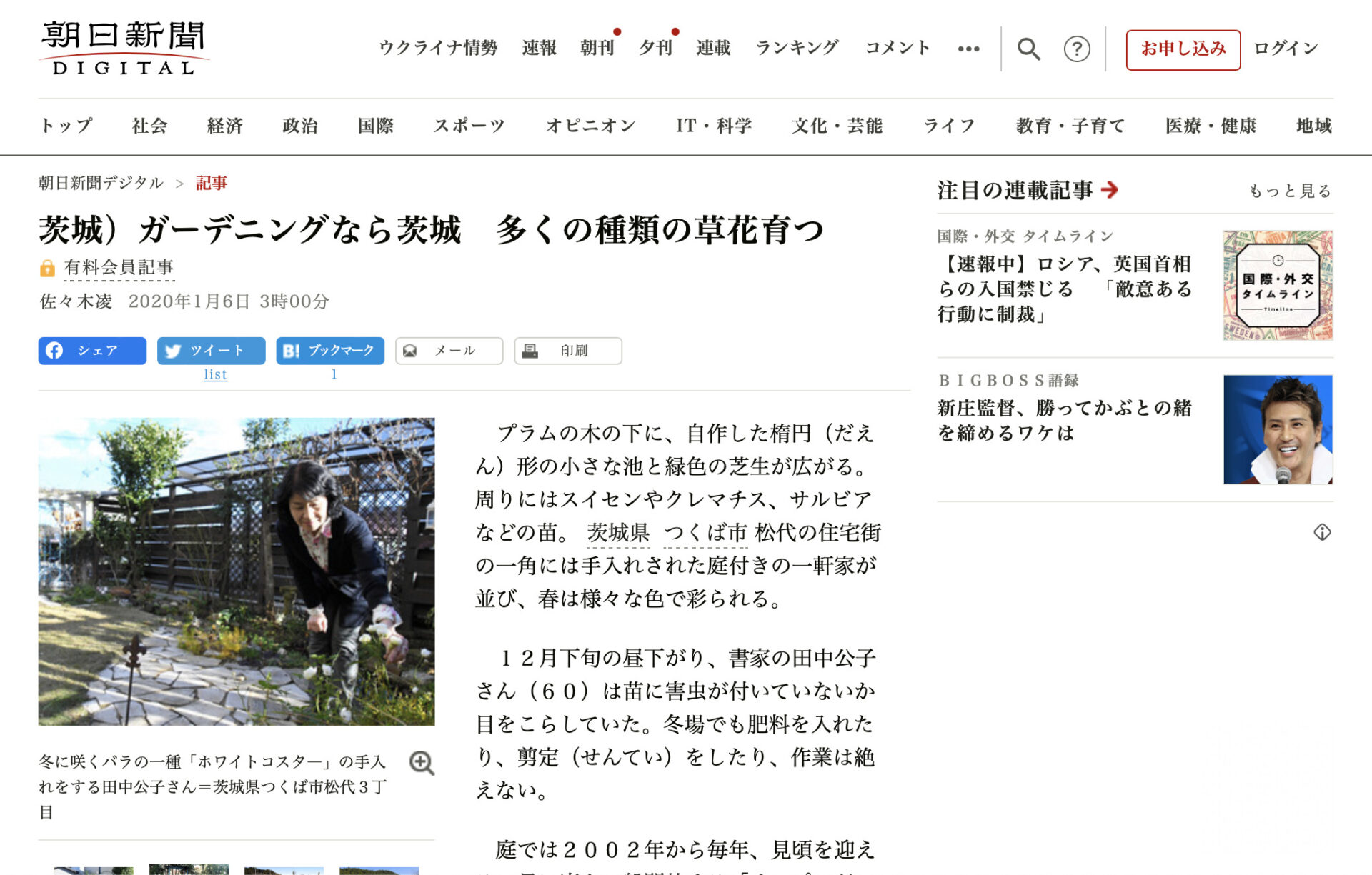 過去のメディア掲載(朝日新聞) 更新日: 4月 16, 20224月 16, 2022 2020年1月6日の朝日新聞に「つくばオープンガーデン」の取材記事が掲載されました。丁寧にイベントの紹介をしていただいていますので、ぜひご覧ください。(有料記事です) 茨城)ガーデニングなら茨城 多くの種類の草花育つ 引用)朝日新聞DIGITAL